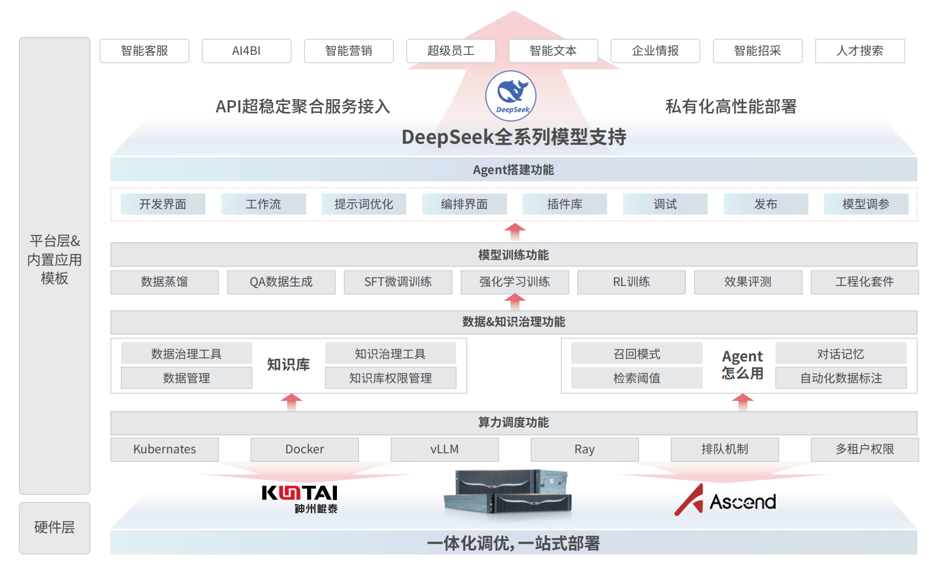 • 问学 DeepSeek 版 + k8凯发昇腾算力,软硬件深度适配优化,一体化交付,开箱即用;